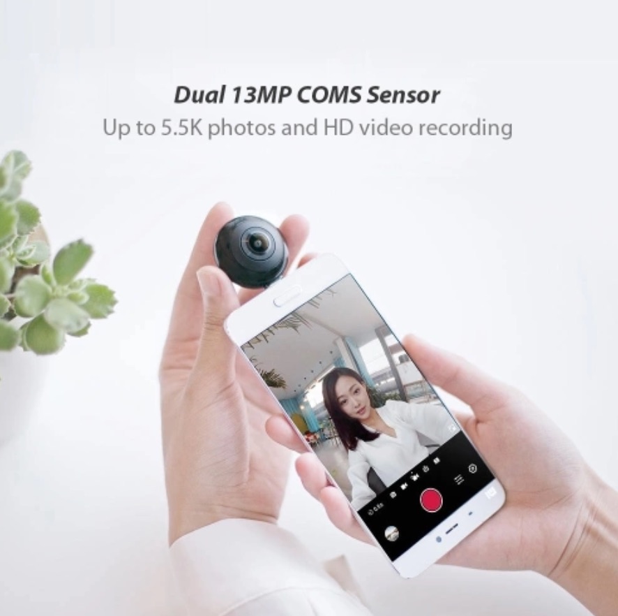 Mini kamera MADY je na každé straně osazena 13MP fotoaparátem, disponuje širokoúhlým objektivem s pozorovacím úhlem 210° a podporuje panoramatický live streaming. Umožňuje také sdílení vašich záběrů a snímků jedním jediným kliknutím prostřednictvím aplikace Mady Mini.