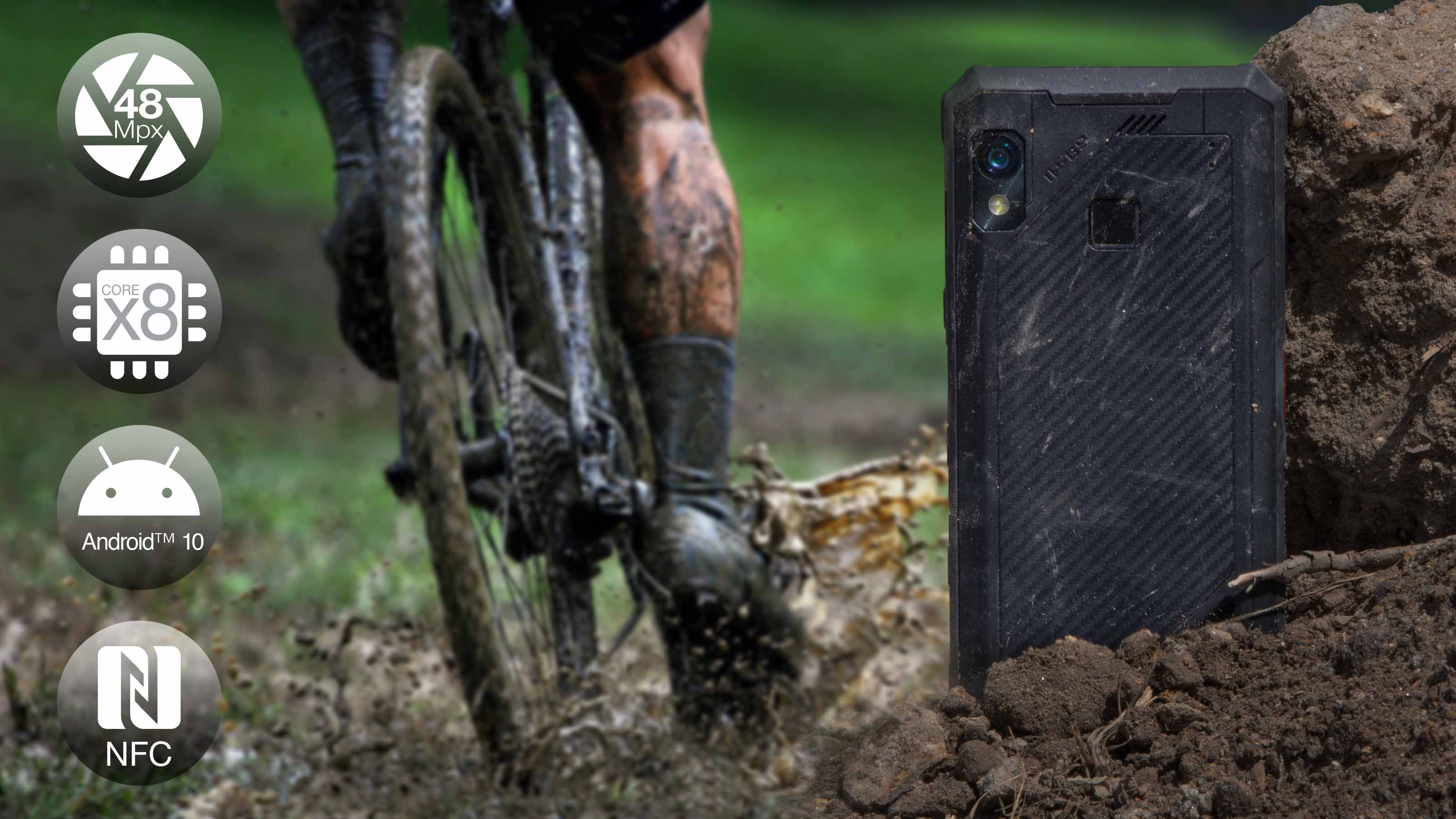 Model StrongPhone G9 nabízí dva způsoby zabezpečení, díky kterým má uživatel jistotu, že jsou jeho data v bezpečí. Jak funkce odemčení otiskem prstu, tak i funkce Face-Unlock nabízí maximální úroveň zabezpečení a rychlý přístup ke konverzacím, fotkám a aplikacím. Pomocí NFC je navíc možné platit bezkontaktně, a to pouhým pohledem na telefon.