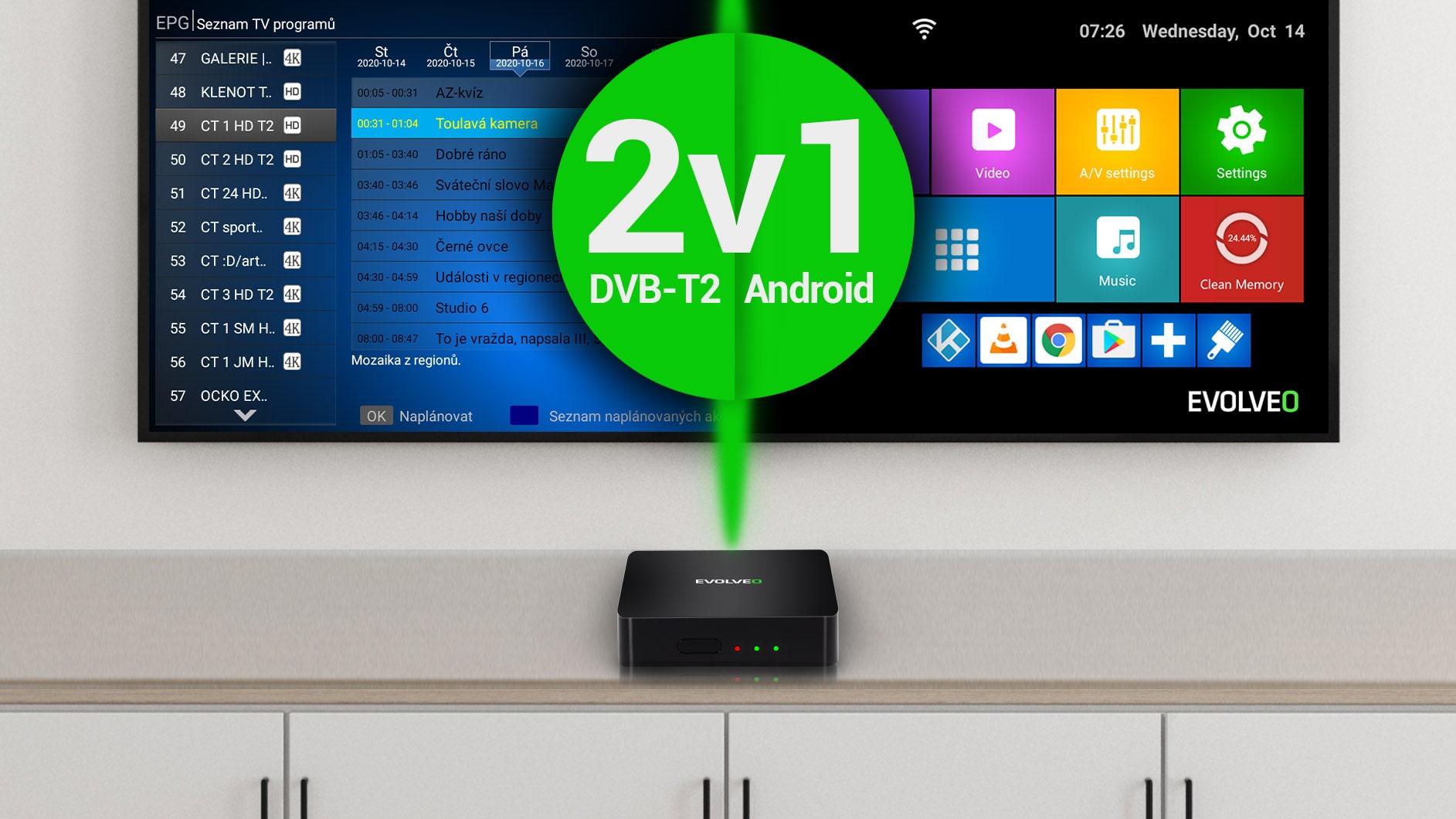 Tisková zpráva: EVOLVEO, značka spotřební elektroniky s českou tradicí, představuje další z řady multimediálních center. EVOLVEO Hybrid Box T2 je multifunkční zařízení, které spojuje set-top box pro přechod na DVB-T2 a multimediální Android centrum pro rozšíření možností připojeného televizoru.