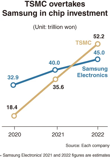 Jihokorejská média uvádějí, že TSMC v roce 2022 investuje 52,2 bilionu KRW (přibližně 44 miliardy dolarů) do rozšíření své činnosti v oblasti výroby čipů. Pro srovnání, společnost Samsung má v plánu investovat 45 bilionů KRW (přibližně 37,7 miliard dolarů). V letech 2020 a 2021 sice investovala společnost Samsung do své odnože zabývající se výrobou čipů mnohem více než TSMC, ale v letošním roce může být všechno jinak.