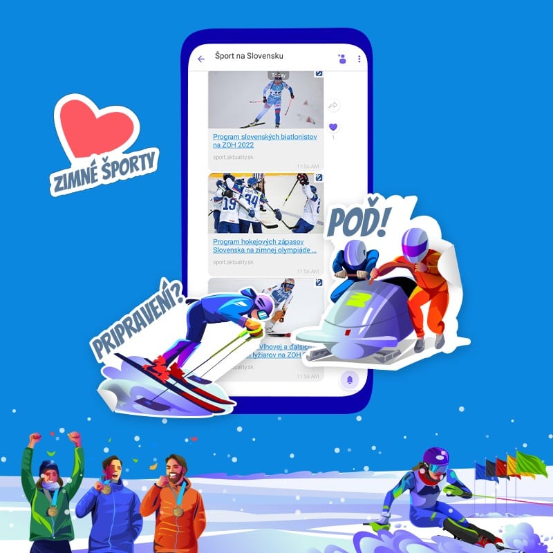 Tisková zpráva: Zimné olympijské hry odštartovali a s nimi aj Šport na Slovensku, nový kanál v obľúbenej komunikačnej platforme Viber. Tento kanál vznikol v spolupráci komunikačnej platformy Viber a portálu sport.aktuality.sk po úspechu komunity pre futbalových fanúšikov Futbal na Slovensku, ktorá má v súčasnosti takmer 50-tisíc členov. Nový kanál Šport na Slovensku prináša slovenským fanúšikom denné zaujímavosti a novinky zo sveta športu. Nie je náhoda, že zimné olympijské hry a tento nový kanál boli spustené v rovnaký deň. Pri tejto príležitosti a na znak tímovej hrdosti spustil Šport na Slovensku špeciálny balíček nálepiek pre všetkých športových nadšencov, ktorý im dáva možnosť spestriť si chat a podporiť svojich obľúbených športovcov zábavným a farebným spôsobom.