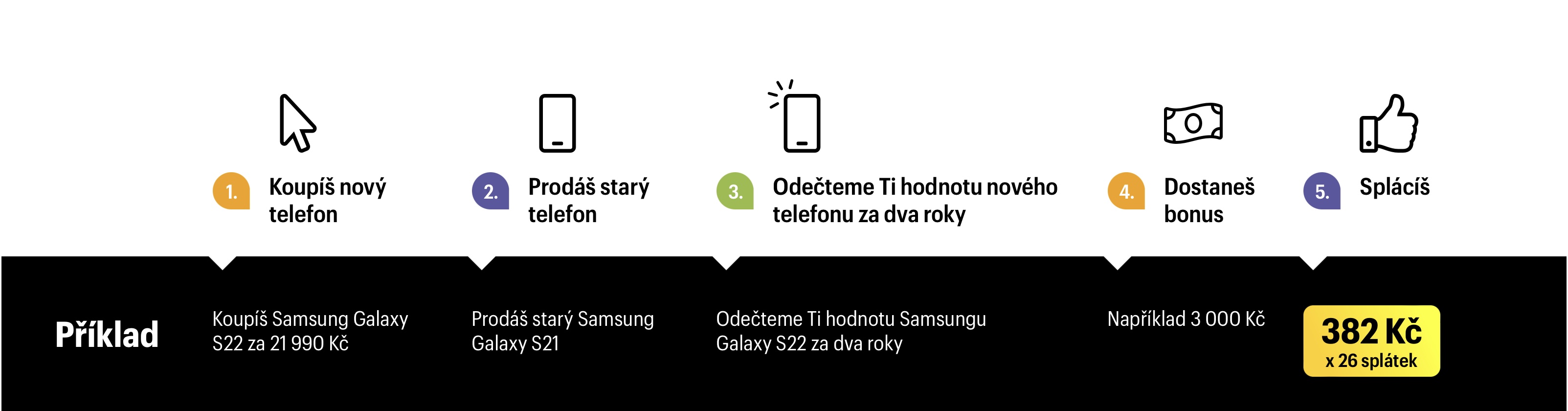 Vysvětlení je přitom úplně jednoduché – Mobil Pohotovost vám zkrátka od ceny nového iPhonu nebo Samsungu odečte jeho budoucí hodnotu za dva roky. Navíc ještě z ceny odečte výkupní hodnotu vašeho stávajícího telefonu a také přidá bonus až 3 000 Kč. Ve finále tak na vás bude čekat nový telefon za bezkonkurenční cenu.