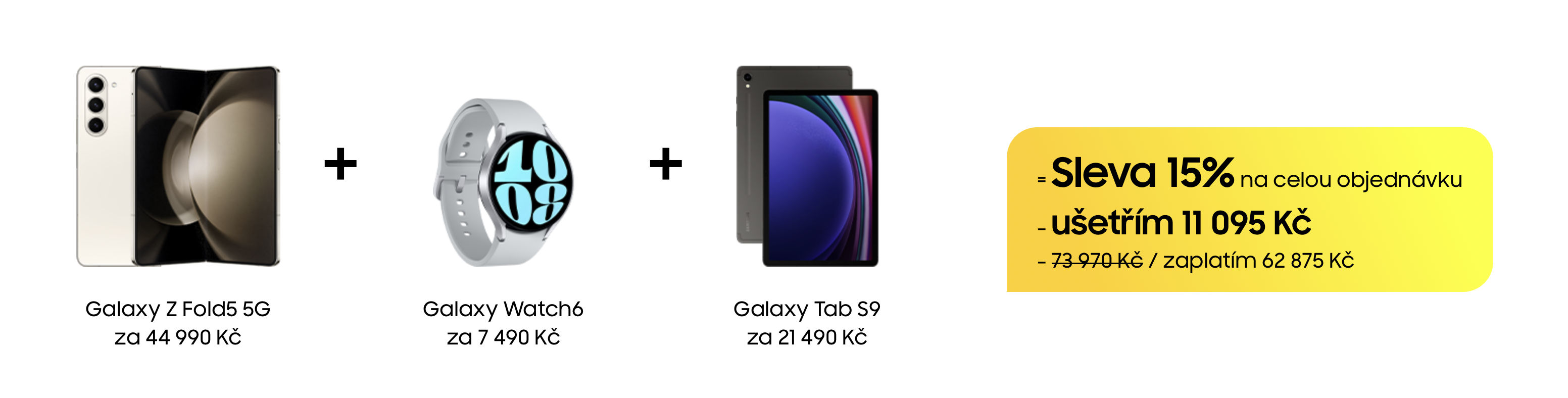 - telefon Galaxy S23 + hodinky Galaxy Watch6 Classic + tablet Galaxy Tab S9 FE+ pořídíte se slevou 7 195 Kč