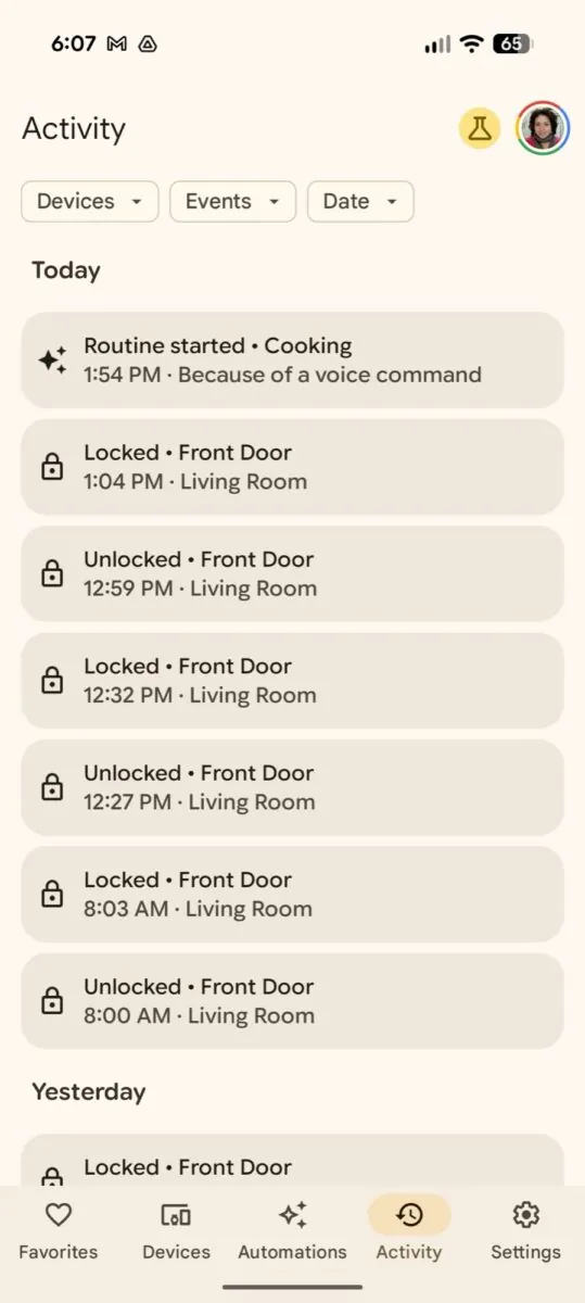 - Nedostatečná historie – v Google Home vidíte, kdy se co stalo. Kdy došlo k zamčení dveří nebo spuštění reproduktoru. Ale už nevíte, co to způsobilo. O tom jak zafungovalo nastavení automatizace a jestli proběhla, se nedozvíte už vůbec. A to jsou ty drobné detaily, které zatím tolik uživatelů odrazují.