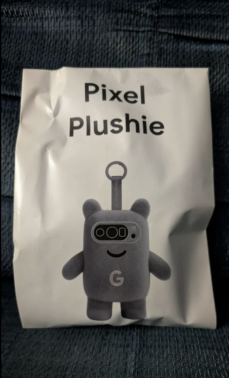 Na fotografiích, které se později objevily i na Telegramu, je vidět šedý mimozemšťanovitý plyšák s typickým Pixel fotoaparátem místo očí a kroužkem na hlavě, který slouží jako poutko pro pověšení na klíče nebo třeba batoh.