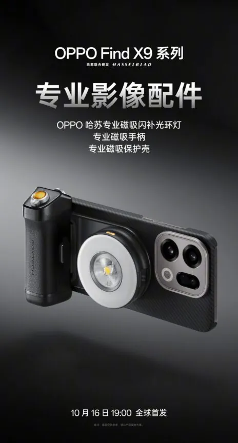 Fotosada pro OPPO Find X9 Pro se bude skládat z několika součástí. Najdete v ní telekonvertorový objektiv s 9,6× zoomem, magnetické pouzdro, magnetický grip s tlačítkem spouště a ramenní popruh pro snazší nošení mobilu. Aby fotky vypadaly ještě lépe, bude možné pořídit si navíc i MagSafe blesk, který zvládne až 700 kontinuálních záblesků, a přisvětlovací svítilnu s až 3,6 W. Ty bude možné přiložit k magnetickému pouzdru nebo dát na grip a vše bude držet pohromadě.