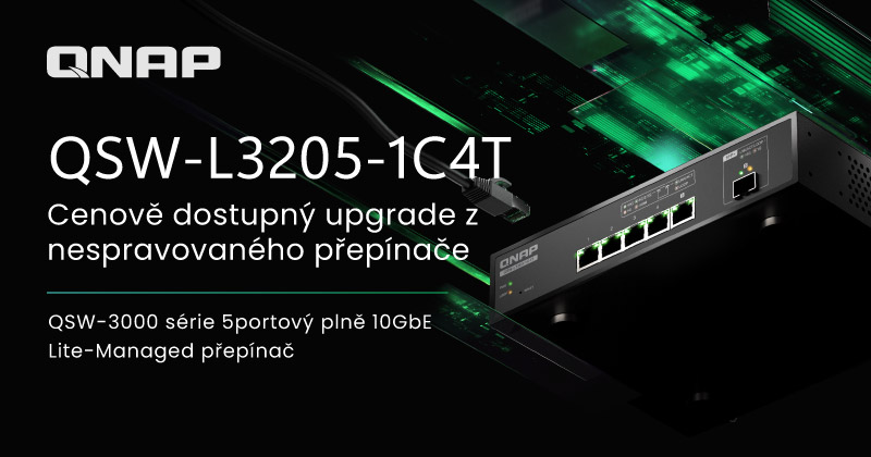 QNAP® Systems, Inc., přední inovátor v oblasti výpočetní techniky, sítí a úložišť, dnes uvádí nový 5portový plně 10GbE Multi-Gig/optický Lite-managed switch QSW-L3205-1C4T. Se čtyřmi porty 10GbE Multi-Gig RJ45 a jedním kombinovaným portem 10GbE SFP+/RJ45 maximalizuje QSW-L3205-1C4T výkon sítě při minimálních nákladech, což z něj činí nejúspornější volbu pro malé studia a tvůrce, kteří přecházejí z neřízených na Lite-managed switche.
