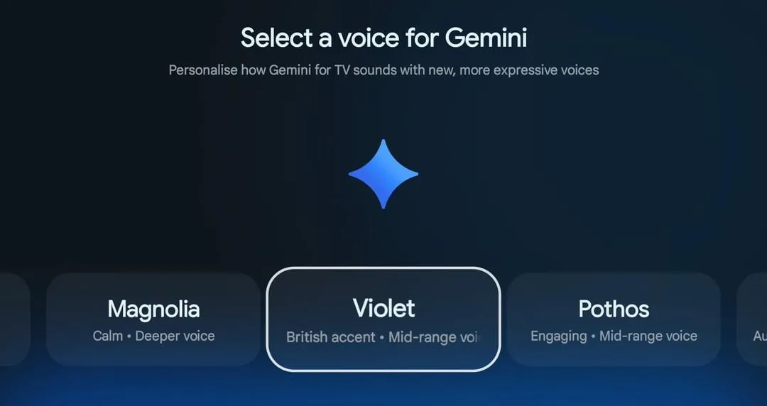 Gemini na Google TV nabízí 10 hlasových variant s popisem jejich charakteru – od teplého a hlubokého hlasu po jasný a energický tón. Názvy jako Bloom, Oxalis, Fern, Magnolia nebo Violet se v Google TV liší od verzí, které známe z mobilů a tabletů s Androidem. Nicméně odpovídají názvům hlasů používaných u chytrých reproduktorů Nest.