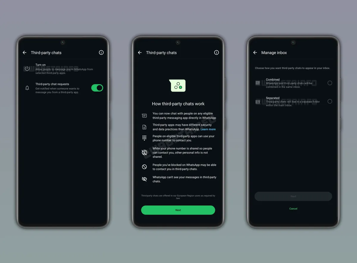 Této testované funkce si všiml portál WABetaInfo a odhalil ji v nejnovější beta verzi pro Android (2.25.33.8). Nese název „Third-party chats“ a umožní posílat zprávy lidem, kteří nepoužívají WhatsApp. Pokud jste se přihlásili k betatestování, už funkci můžete vyzkoušet, ale zatím je dostupná pouze v Evropě. Najdete ji v Nastavení a pak pod položkou Účet. Zde ji stačí jen aktivovat a pak už můžete přijímat i posílat zprávy, obrázky, videa, dokumenty či hlasové zprávy. Nebude ale možné takto posílat nálepky nebo sdílet statusy.
