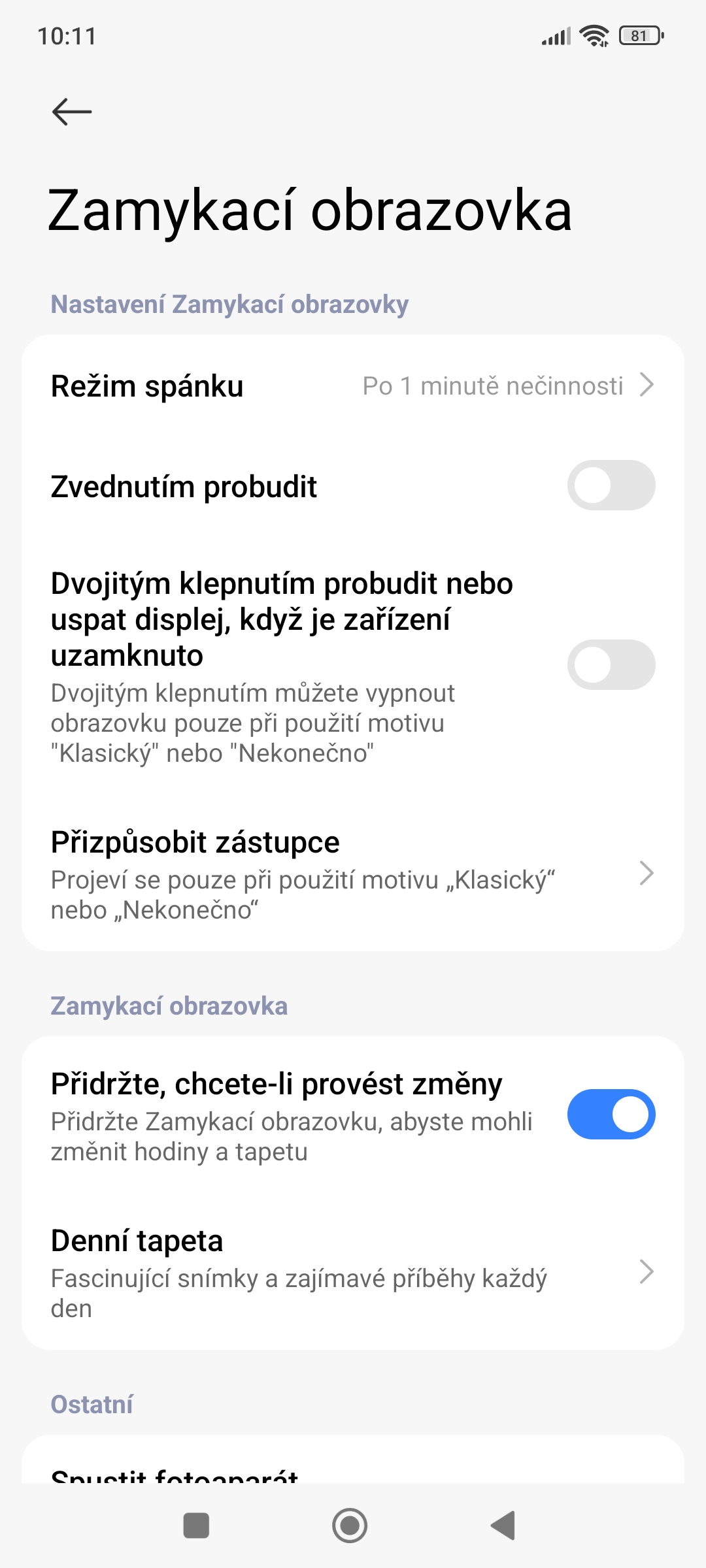 • Vyberte položku Zamykací obrazovka