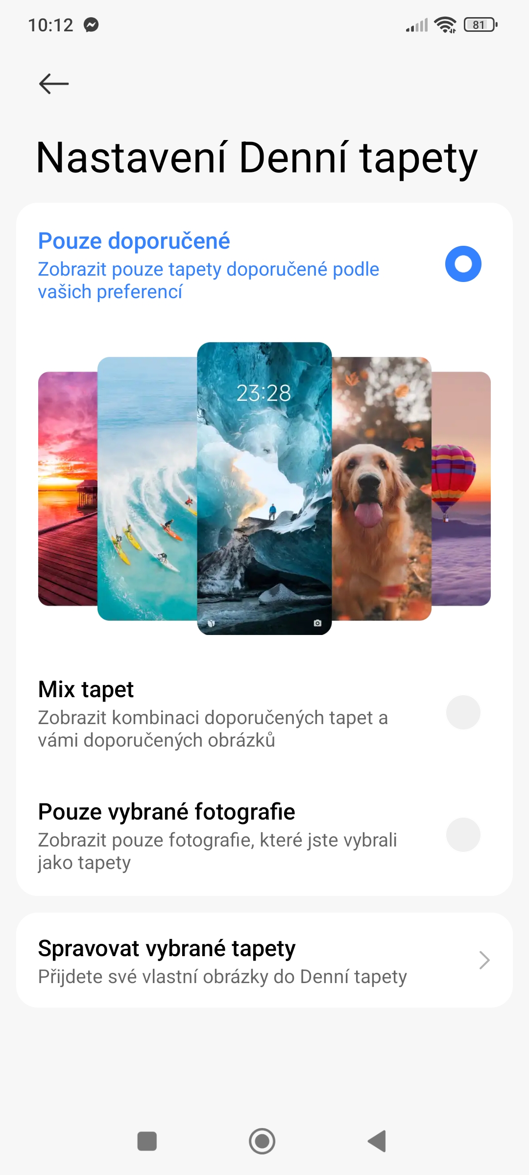 • Níže je ještě položka Spravovat vybrané tapety, kde si můžete tapety ještě více přizpůsobit