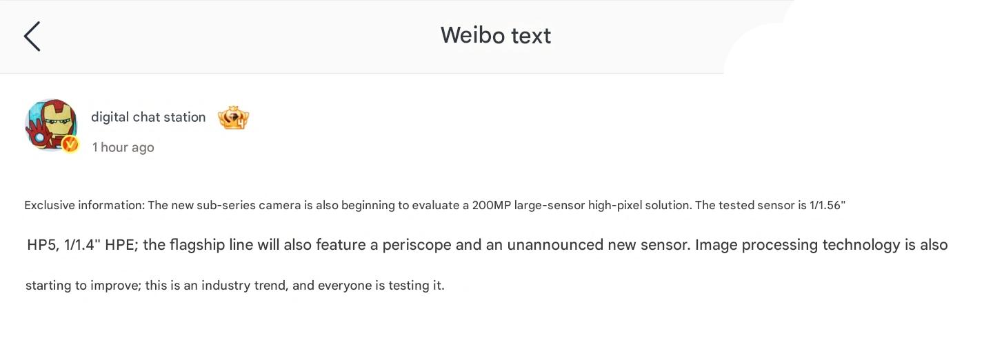 Leaker Digital Chat Station se na portálu Weibo podělil o své zjištění, že Xiaomi testuje 200MPx velkosenzorový fotoaparát, který bude určen pro jeho příští vlajkový smartphone. Toto nejmenované zařízení prý testuje CMOS senzory 1/1,56″ HP5 a 1/1,4″ HPE, přičemž ve finále bude nejspíš mít jeden z nich. Plus by mělo mít periskopický teleobjektiv a ještě jeden dosud nezjištěný snímač.