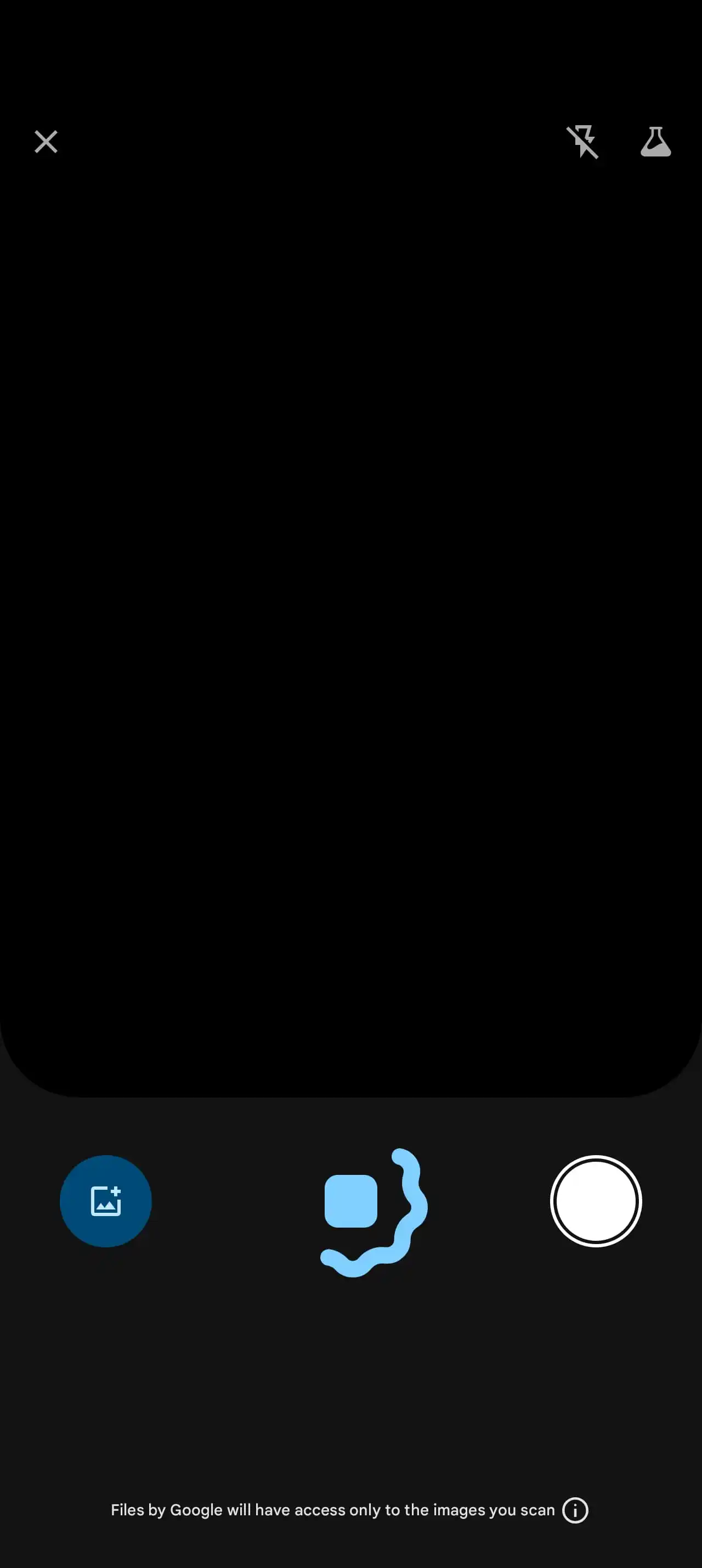 Skenování začíná se zakulaceným hledáčkem a přehledně umístěnými ovládacími prvky. Tlačítka pro zavření, blesk a přepnutí na starou verzi jsou nyní ve svislých „pilulkách“ v horní části obrazovky.