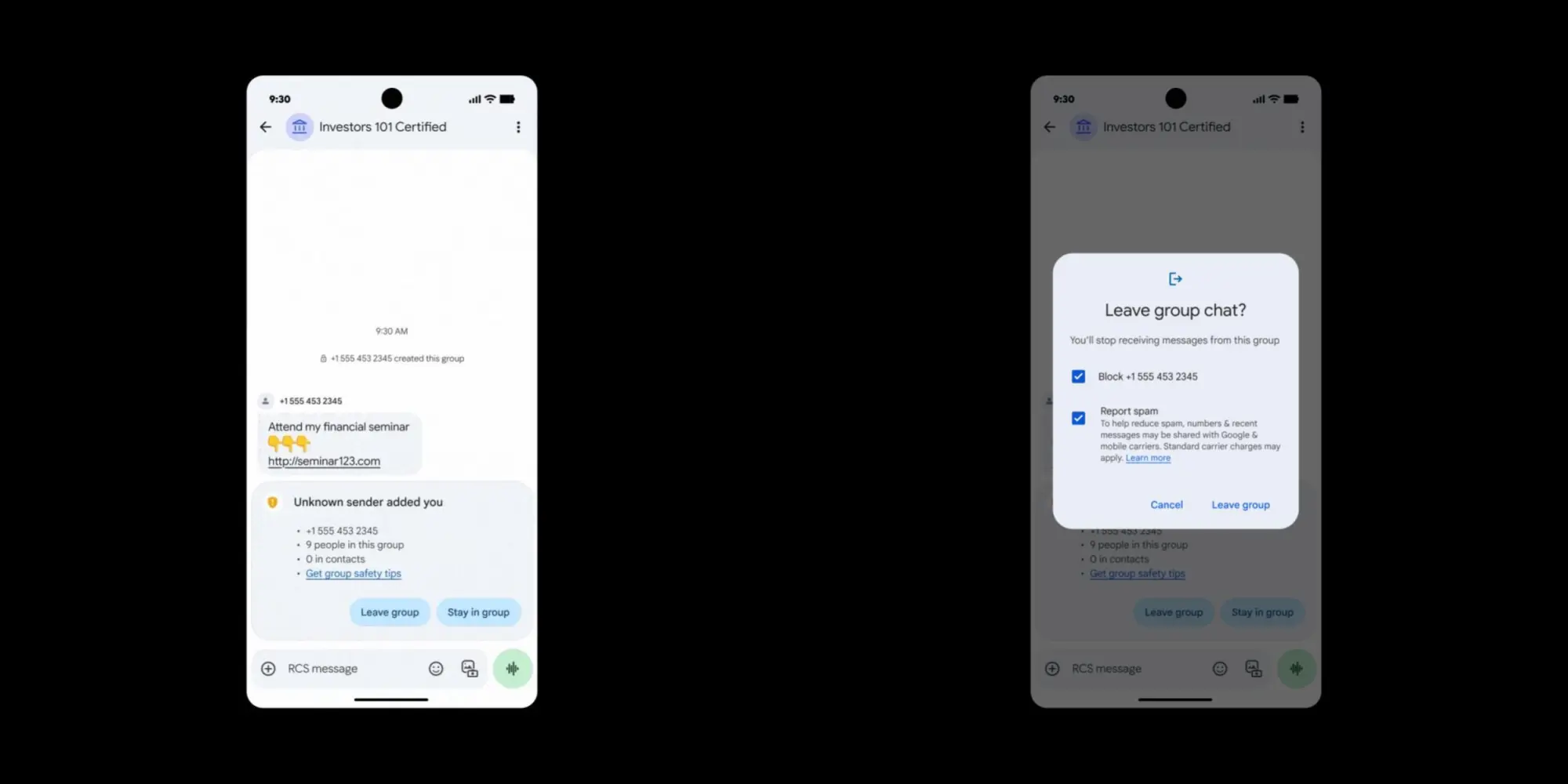 Druhou zajímavou novinkou, kterou Google začíná šířit k uživatelům, je upozornění na přidání do skupinových chatů. To se vám zobrazí ve chvíli, kdy vás přidá někdo s vám neznámým telefonním číslem. Uvidíte text „Neznámý odesílatel vás přidal“ a pod ním telefonní číslo dotyčného člověka a počet členů v dané skupině. U toho uvidíte možnosti „Zůstat ve skupině“ a „Opustit skupinu“. Pokud klepnete na druhou, zároveň dostanete šanci ihned zablokovat dané telefonní číslo.
