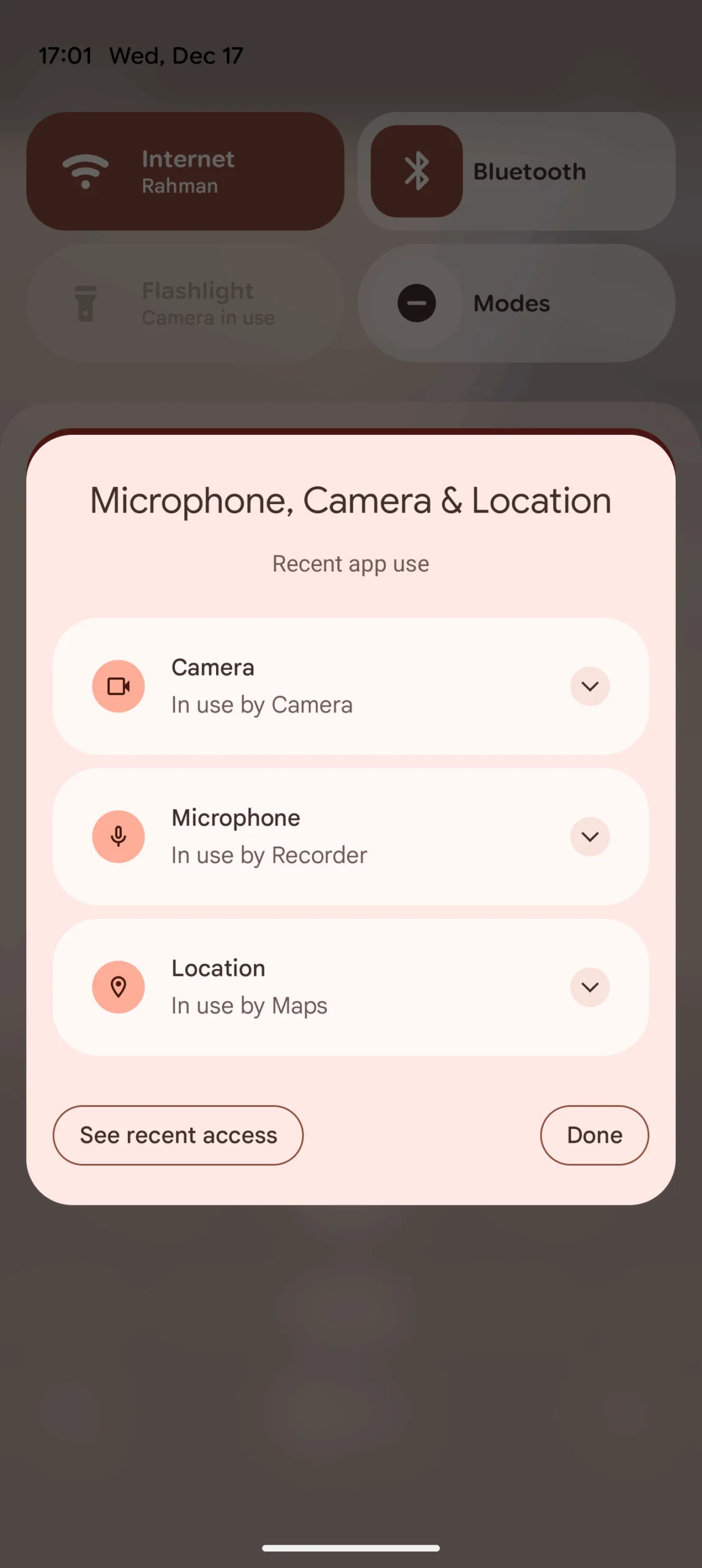 A jak to bude fungovat? Z beta verze plyne, že půjde o modrý rozbalitelný indikátor polohy zobrazený ve stavovém řádku. Po klepnutí se otevře dialogové okno s titulkem „Mikrofon, kamera a poloha“, které přesně ukáže, jaké aplikace toto oprávnění používají. Podobně ostatně funguje i upozornění na aplikace používající mikrofon nebo kameru, akorát má zelenou barvu. A nově budou všechna pod jednou položkou.