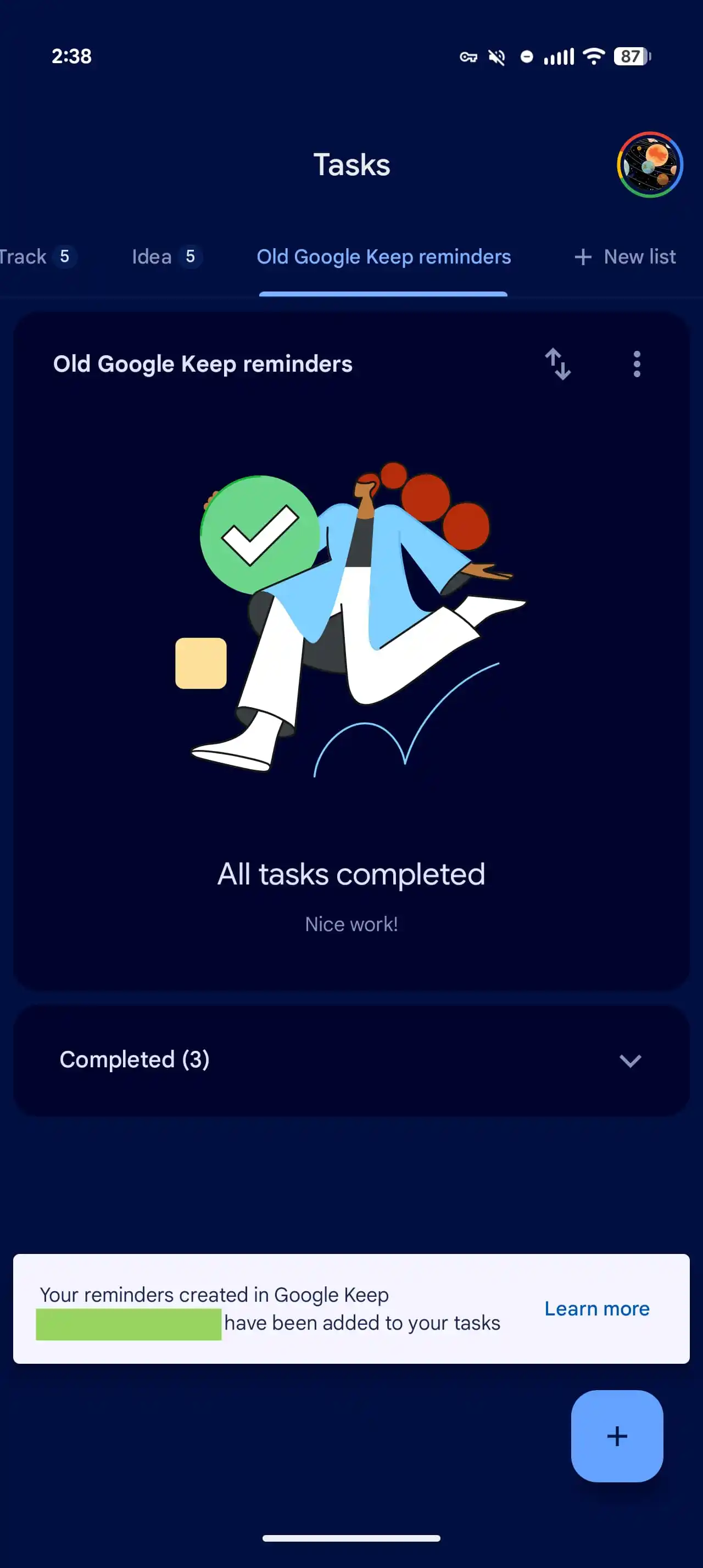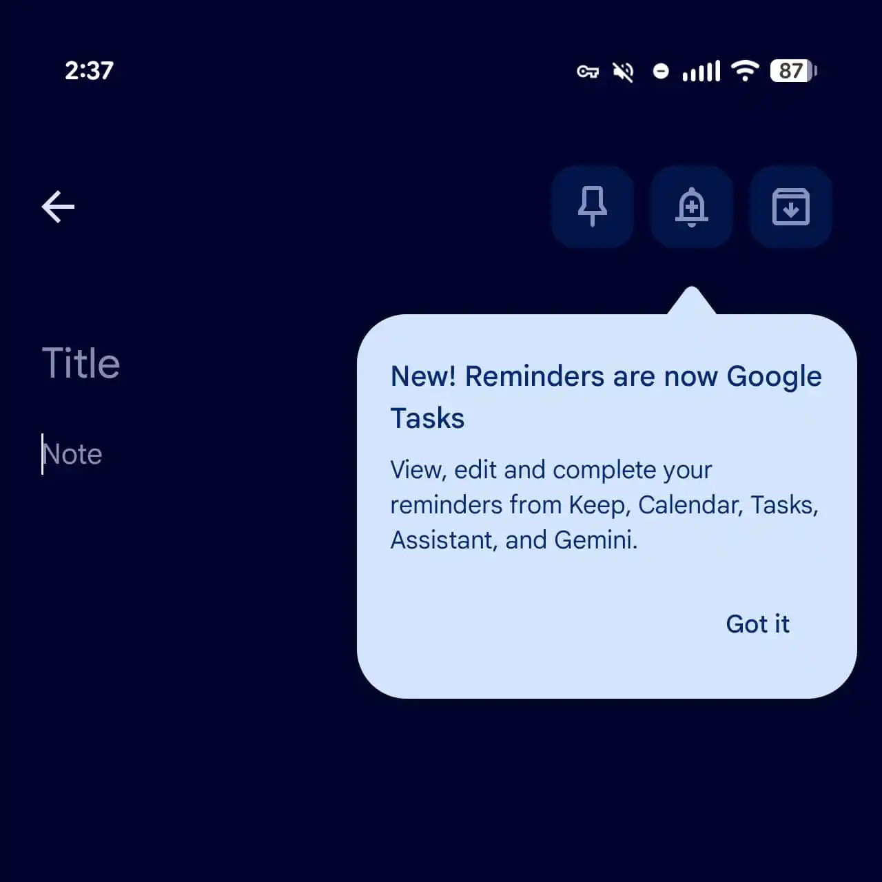Po přesunu se vytvoří nová seznamová složka „Old Google Keep reminders“. Tu lze ručně smazat přes nabídku tří teček. Google zároveň přestal odesílat notifikace z Keep – nyní je zajišťuje pouze Kalendář nebo Tasks. Při vytvoření nové připomínky v Keep se sice stále objeví plovoucí tlačítko, ale připomínka se přidá do Tasks. Notifikace se už v Keep neukážou.