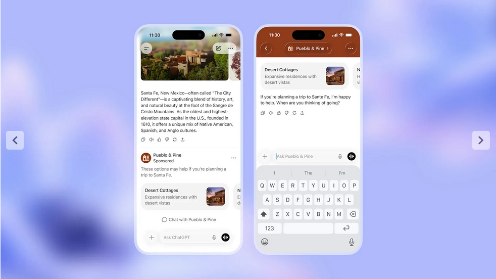 Firma rovnou uvedla i několik konkrétních příkladů, které uživatele nejspíš nepotěší. Když chatGPT požádáte například o „nápady na autentická mexická jídla“, pod odpovědí vám zároveň zobrazí reklamu na aplikaci pro rozvoz potravin s pálivou omáčkou. Až budete hledat informace o ubytování v určitém městě, kromě klasických odpovědí chatbota nově zase třeba uvidíte přímý odkaz na reklamního partnera, který ubytování v této lokalitě nabízí. A je zřejmé, že reklama bude zejména na mobilech zabírat značnou část obrazovky.