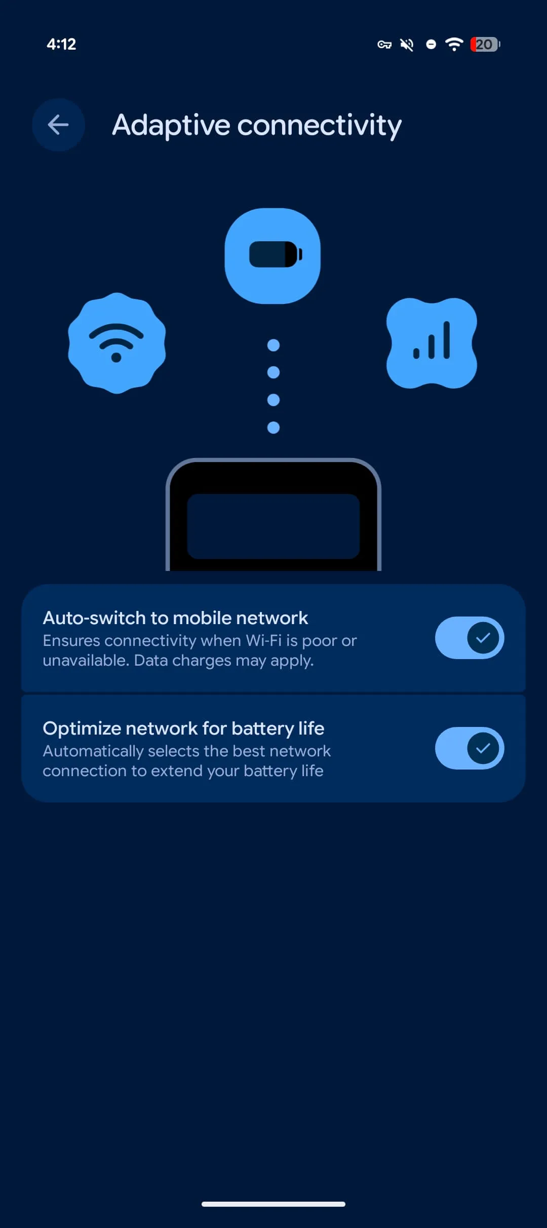 Už v Android 16 QPR2 umožnil Google aktivovat takzvané Adaptivní připojení, které jednoduchým přepnutím na zapnuto/vypnuto prodlužuje výdrž baterie a zlepšuje výkon. Dosaženo je toho tím, že mobil si sám začne spravovat síťová připojení a zbytečně tedy neplýtvá energií ani výkonem. V beta verzi další aktualizace ale byl objeven další přepínač. Nová dvojice nahradí současnou možnost „Používat adaptivní připojení“, a to položkami: