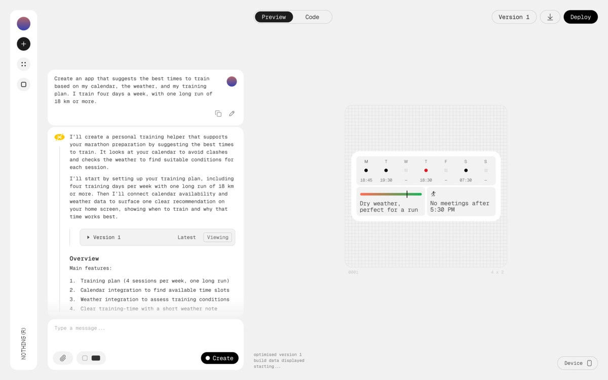 Nothing se proslavil jako výrobce neotřelých mobilů s Androidem, jimž specificky upravuje i vnitřní prostředí včetně widgetů. Ale rozsah jeho činností je mnohem širší. Teď například představil komunitní platformu, na níž si mohou lidé sami vytvořit své vlastní aplikace. A to bez kódování nebo jakékoliv znalosti programování – postačí jen zadávat prompty, které zpracuje umělá inteligence.