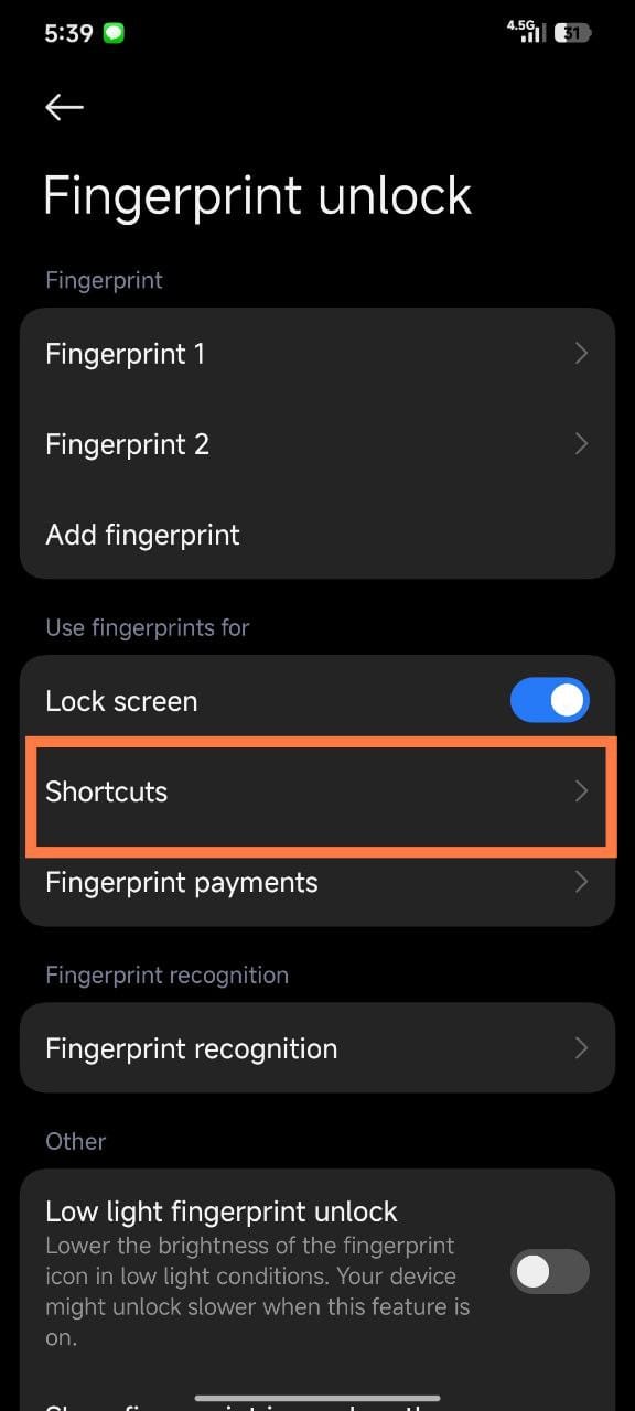 2. Přejděte do sekce Odemknutí otiskem prstu