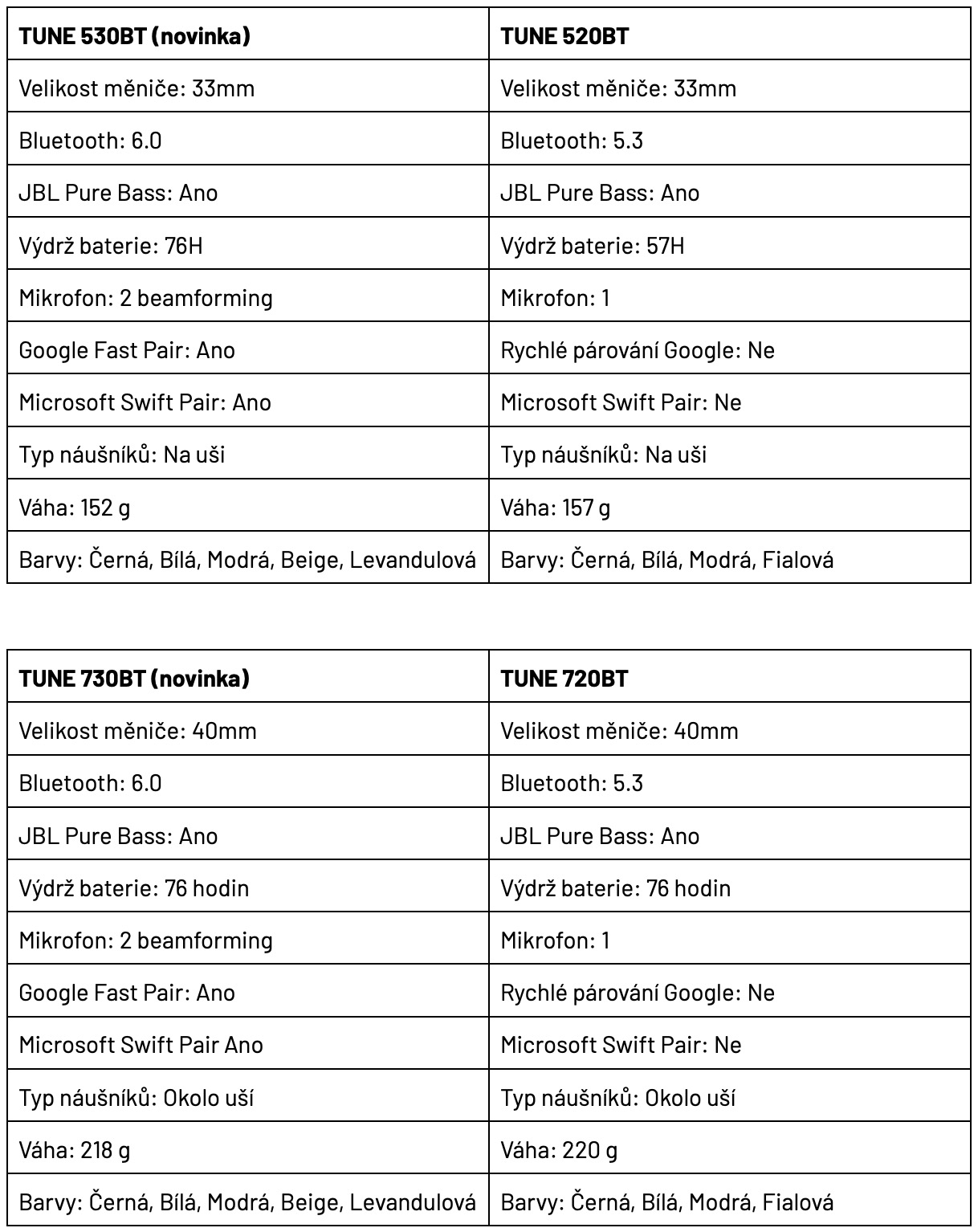Na jbl.cz nebo u autorizovaných prodejců naleznete nová sluchátka JBL Tune 530BT s cenou 1 490 Kč a sluchátka JBL Tune 730BT s cenou 1 990 Kč. Zároveň se JBL loučí s předchůdci Tune 520BT a Tune 720BT, které aktuálně seženete v atraktivních slevách.