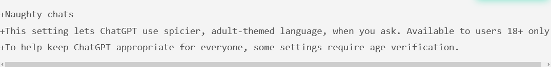 Tato volbav chatGPT má umožnit používání „pikantnějšího“, dospělejšího jazyka, a to výhradně na vyžádání uživatele. Nejde tedy o změnu výchozího chování chatGPT, ale o rozšíření možností pro ty, kteří o podobný typ komunikace stojí.