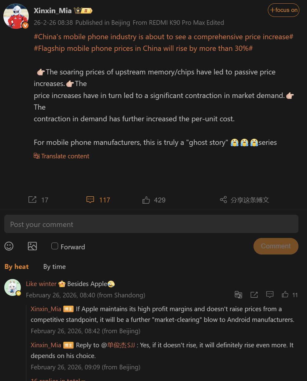 Tento pokles objemu prodejů přitom paradoxně tlačí ceny tlačí výš – fixní náklady na vývoj a výrobu se totiž musí rozpočítat mezi menší počet prodaných kusů. Aby si giganti jako Xiaomi udrželi marže a schopnost dalšího vývoje, nezbývá jim nic jiného než přenést tyto náklady na bedra zákazníků.