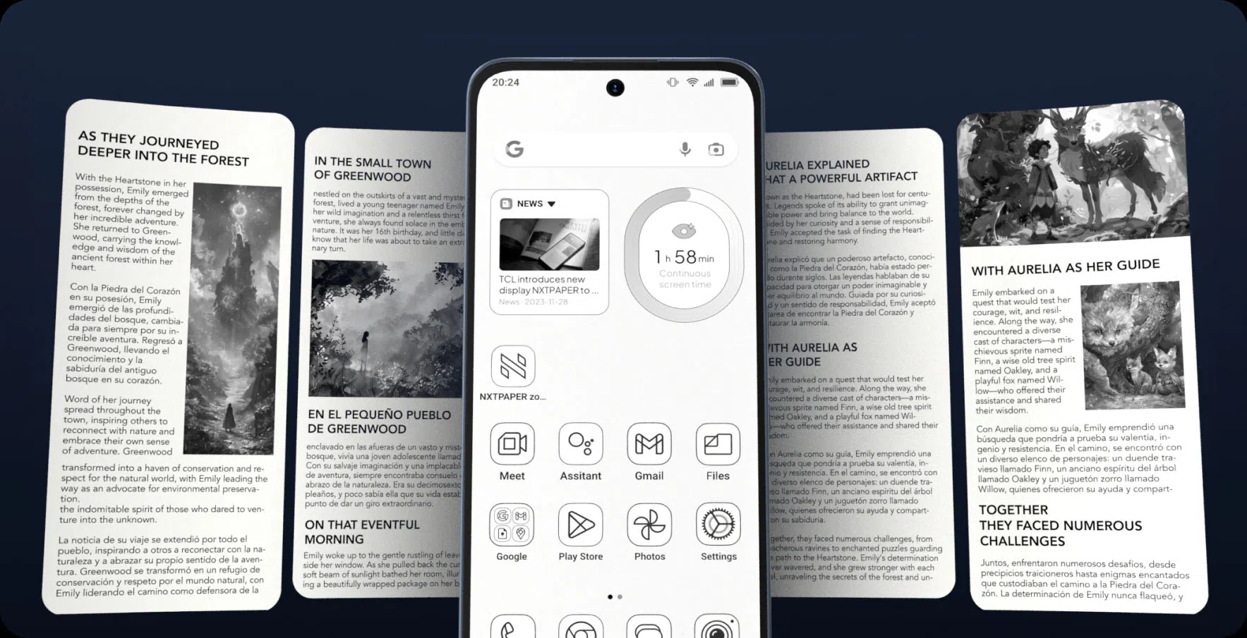 Nejzásadnějším prvkem TCL Nxtpaper 70 Pro je 6,9palcový IPS panel s FullHD+ rozlišením a plynulou 120Hz obnovovací frekvencí. To, co ho odlišuje od veškeré konkurence, je ale technologie Nxtpaper. Nejde jen o softwarový filtr – displej disponuje antireflexní úpravou, technologií přirozeného světla a nulovým blikáním. Díky eliminaci modrého světla a cirkadiánnímu režimu je sledování obrazovky i ve tmě výrazně šetrnější k očím.
