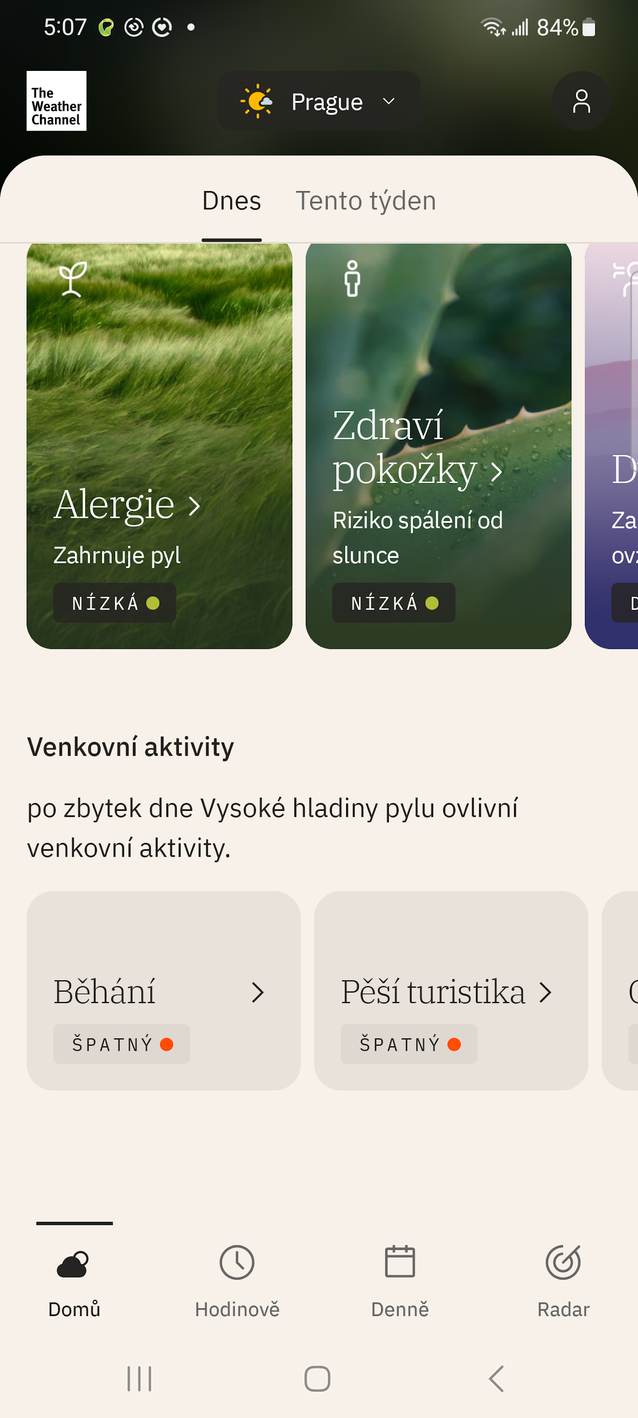 Zaujalo mě, že má i vlastní widget s pylovou situací, který si můžete umístit na domovskou obrazovku. Přes něj se prokliknete na mapu, kde uvidíte pylovou situaci ve vašem okolí, což je nesmírně cenné zejména pro alergiky. Je třeba ale zmínit, že všechny funkce nejsou dostupné zdarma, za komplexní balíček si musíte připlatit. Ale i základní aplikace je podle mě zcela dostačující.