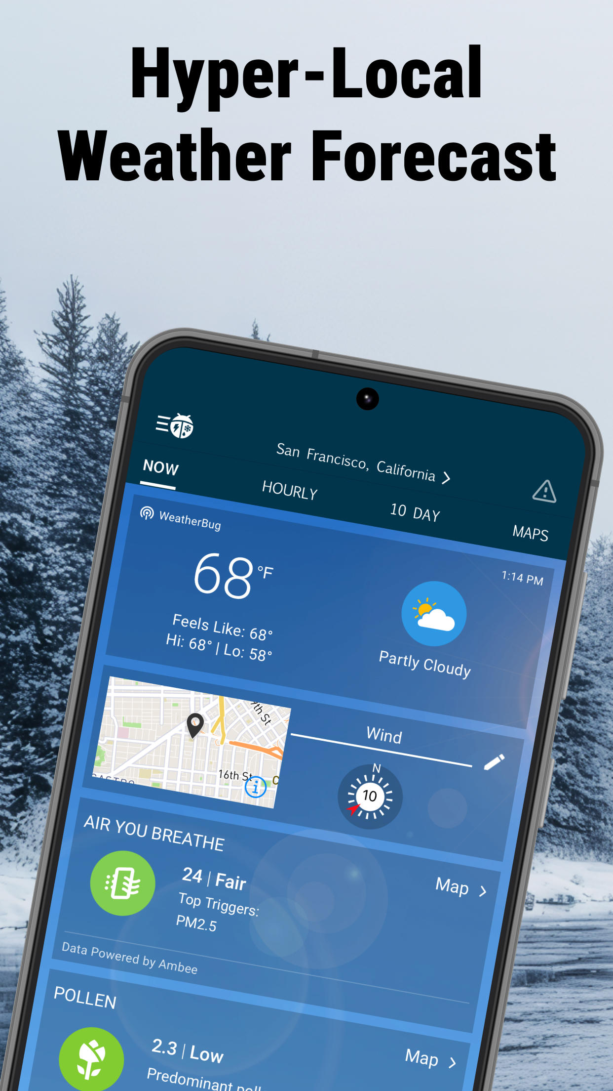 Ačkoliv název může leckoho zmást, nejde o žádnou vtipnou aplikaci nebo nepovedenou verzi plnou „bugů“. WeatherBug patří k nejlepším aplikacím pro předpověď počasí. Na Google Play má 1,92 milionu recenzí a hodnocení 4,7. V přehledných kategoriích nabízí hodinovou předpověď, sílu větru, sledování bouří, radar, zobrazení rizika silných bouří nebo tlak vzduchu. Nechybí ani upozornění na nečekané povětrnostní stavy.