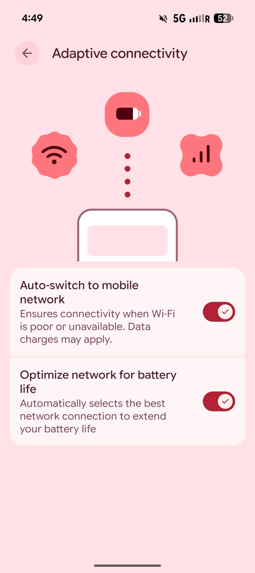 Adaptivní konektivitu najdete v Nastavení na stránce Networka&Internet a dosud šlo o pouhý přepínač. Když byl aktivní, údajně zajišťoval delší výdrž baterie a zlepšoval výkon zařízení, jelikož automaticky spravoval síťová připojení. V Android 16 QPR3 přibyla dvě detailní nastavení, která máte ve výchozím stavu aktivní: