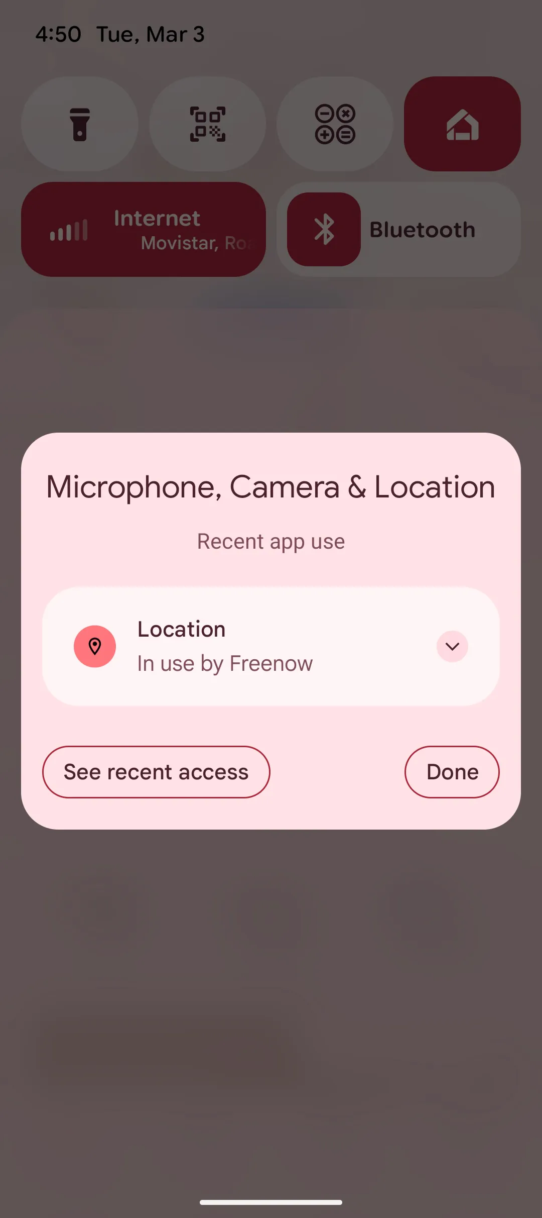 Jakmile bude spuštěna aplikace, která používá polohu, uvidíte v pravém horním rohu malou modrou tečku. Když pak přejdete do panelu oznámení (Rychlá nastavení), stane se z tečky pilulka s ikonou polohy. A po klepnutí uvidíte, která aplikace vás právě špehuje.