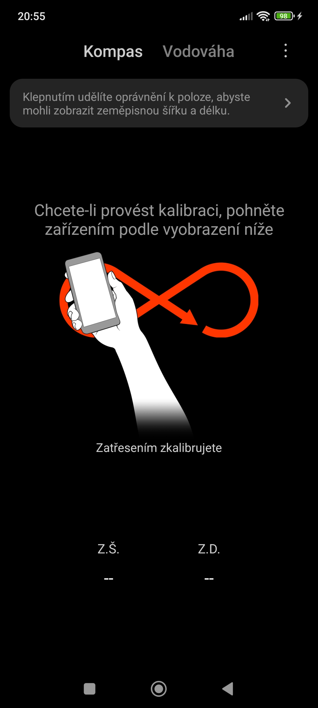 Senzory v mobilu mohou nahradit i kompas. Nemáte tu sice klasickou střelku ukazující k severu, ale přesto telefon dokáže určit světové strany. Aby to bylo možné, je nejprve potřeba zkalibrovat kompas zatřesením ve tvaru osmičky. Zároveň je nutné mít zapnutou polohu. Telefon pak sám určí zeměpisné souřadnice. Na základě nich kompas začne fungovat a pomůže vám, když se třeba ztratíte v lese nebo vymyslíte zábavnou bojovku pro své děti.
