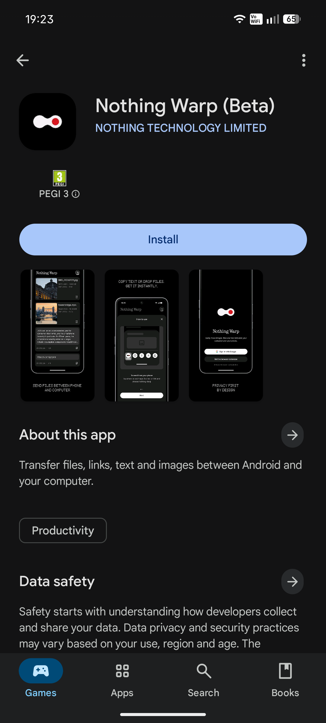 Hlavní devízou nové aplikace Warp, kterou můžete stáhnout na Google Play, je její integrace do uživatelského workflow. Na straně smartphonu (podporovány jsou všechny modely s Androidem, nikoliv jen telefony Nothing) se Warp objeví v systémovém menu pro sdílení. Můžete tak okamžitě odesílat: